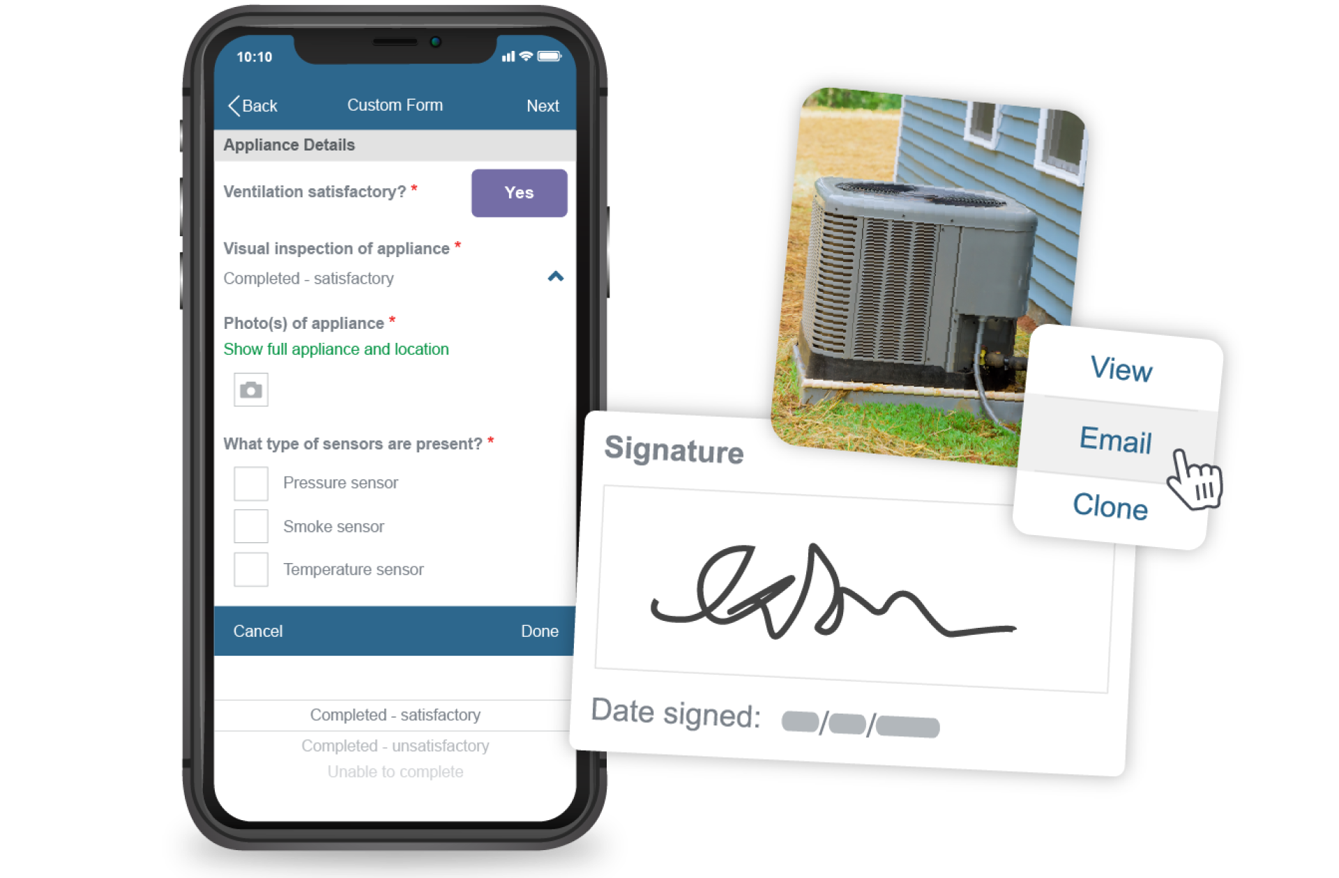 Ensure site safety and compliance by having techs complete digital custom forms organized by job type.