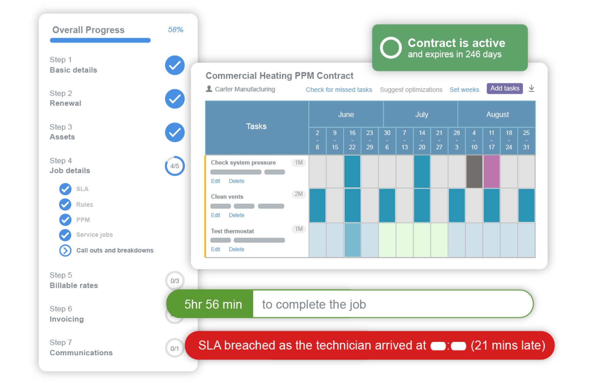 We make it easy to manage complex contracts and agreements. From setting contract lengths, to assigning assets, and PPM schedules, Commusoft walks users through contract creation with a user-friendly set-up wizard.